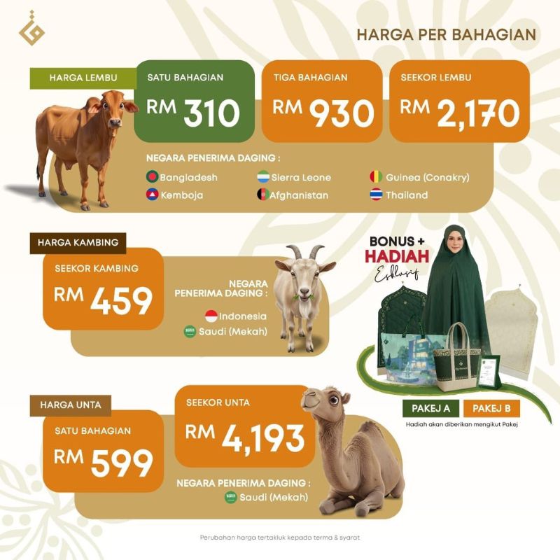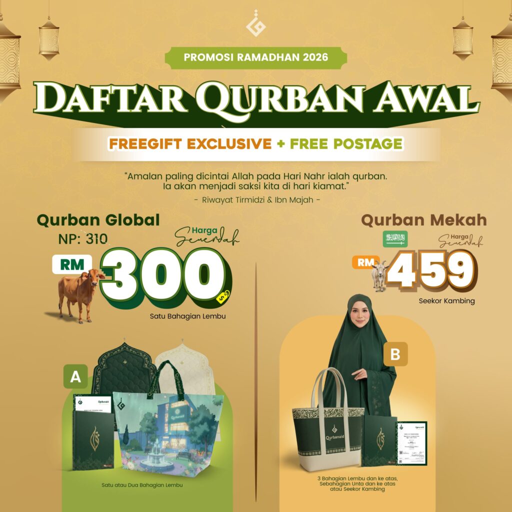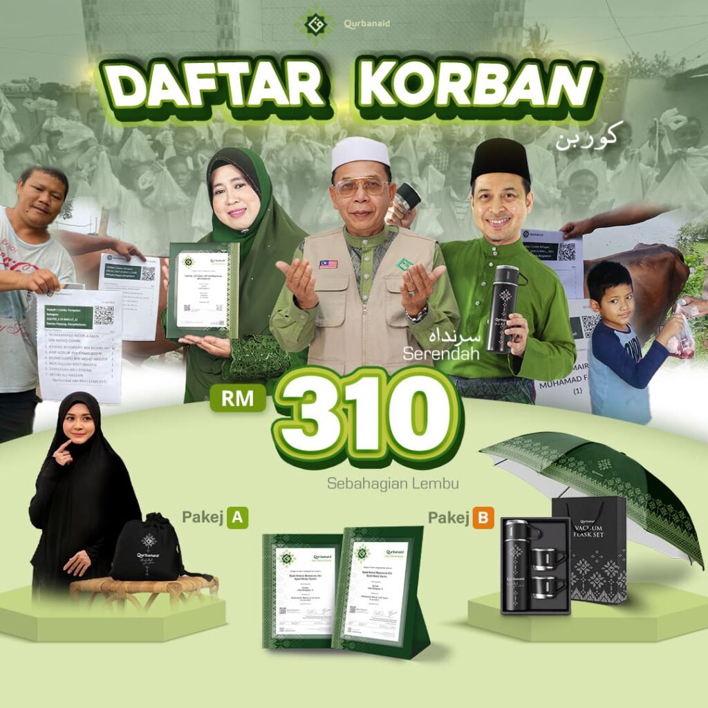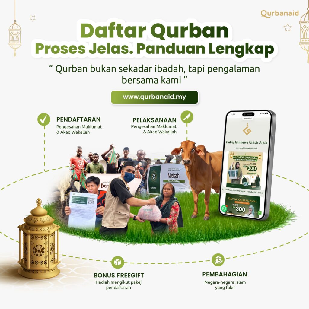 Program Korban 2025 dianjurkan oleh Qurbanaid International bagi memudahkan pendaftaran dan penyertaan ibadah Qurban. Semua maklumat yang dipaparkan dalam iklan dan promosi kami adalah tepat pada waktu penerbitan. Walau bagaimanapun, kami tidak menjamin bahawa maklumat ini bebas daripada perubahan atau kesilapan, termasuk tetapi tidak terhad kepada harga pakej, lokasi penyembelihan, pengagihan daging, serta sebarang tawaran promosi. Sebarang perubahan akan dimaklumkan kepada pelanggan dengan kadar segera.